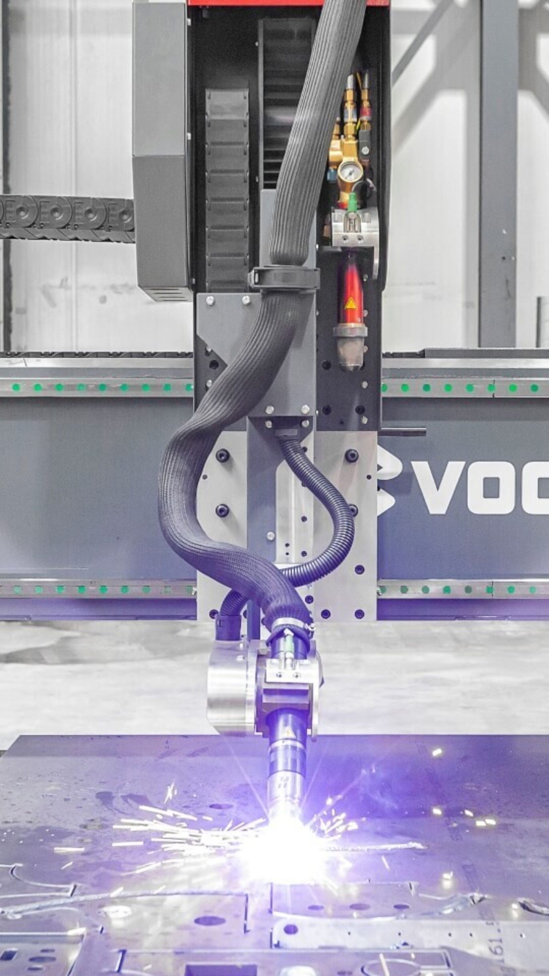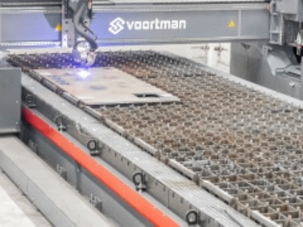 Die Voortman V310 ist eine multifunktionale CNC-Blechmaschine, die Plasmaschneiden und Brennschneiden, Bohren, Gewindeschneiden, Fräsen und Anfasen in einem Setup kombiniert. Sie bearbeitet Bleche bis zu 200 mm und Löcher von 5–50 mm mit Gewinden bis M30. Mit bis zu 28 Werkzeugen, automatischer Auswahl, fortschrittlicher Software und einzigartigen Plasmaschneidtechnologien ist sie auf hohe Automatisierung, Präzision, Betriebszeit und reduzierte manuelle Arbeit durch schlanke, beleuchtungsfreie Workflows ausgelegt.