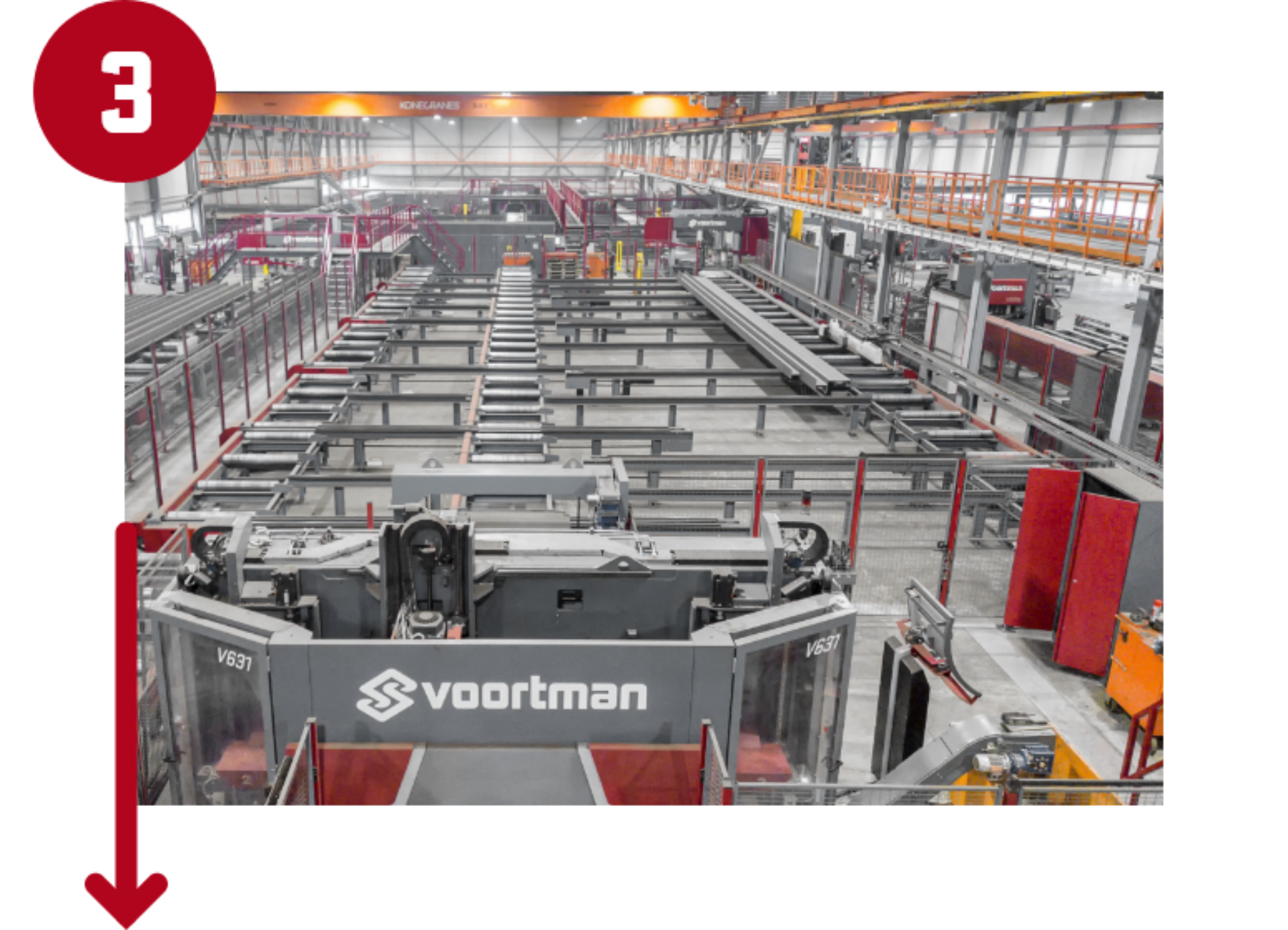 Wir entwerfen und installieren weltweit viele vollautomatische Produktionslinien, die mit hochwertiger Hardware und intelligenter Software ausgestattet sind. Im Zuge unserer Multi System-Lösung werden Maschinen nahtlos über unsere VACAM-Software, Quertransporte, Rollenbahnen, Produktpuffer und Materialsensoren verbunden. Reijrink Staalconstructie, ein großer niederländischer Stahlhersteller, ist ein Paradebeispiel für diese Vorgehensweise.