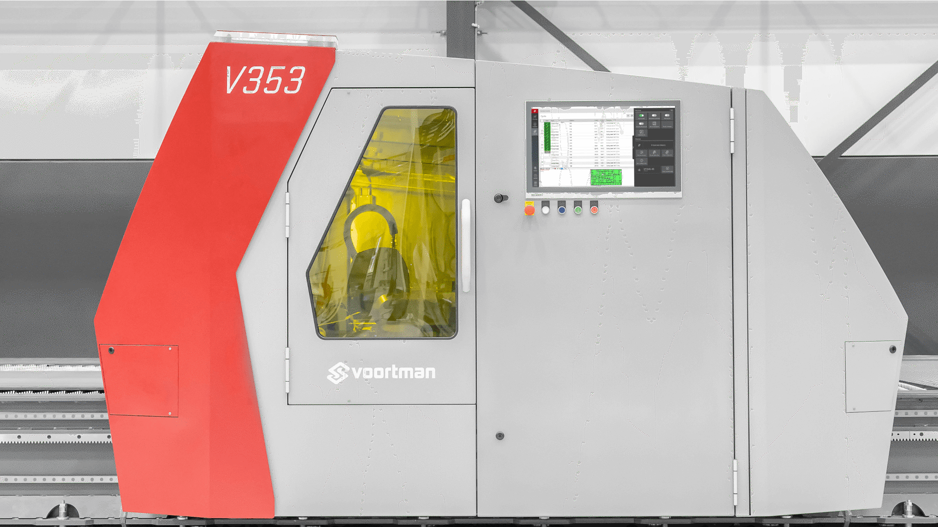 Der Voortman V353 hebt dies auf ein neues Niveau. Der Prozess läuft in einer vollständig geschlossenen Einhausung ab, in dem sich pneumatische Ventile nur in der aktiven Schneidzone öffnen, um Funken und Staub zu entfernen. Gleichzeitig minimiert das System Prozessschwankungen, da nur ein einziges Verschleißteil (die Düse) verwendet wird, das vollautomatisch gereinigt, überprüft und durch den 24-fach-Düsenwechsler ausgetauscht wird.Die integrierte Bildverarbeitung kontrolliert kontinuierlich die Rundheit und Ausrichtung, um eine gleichbleibende Qualität zu gewährleisten.
