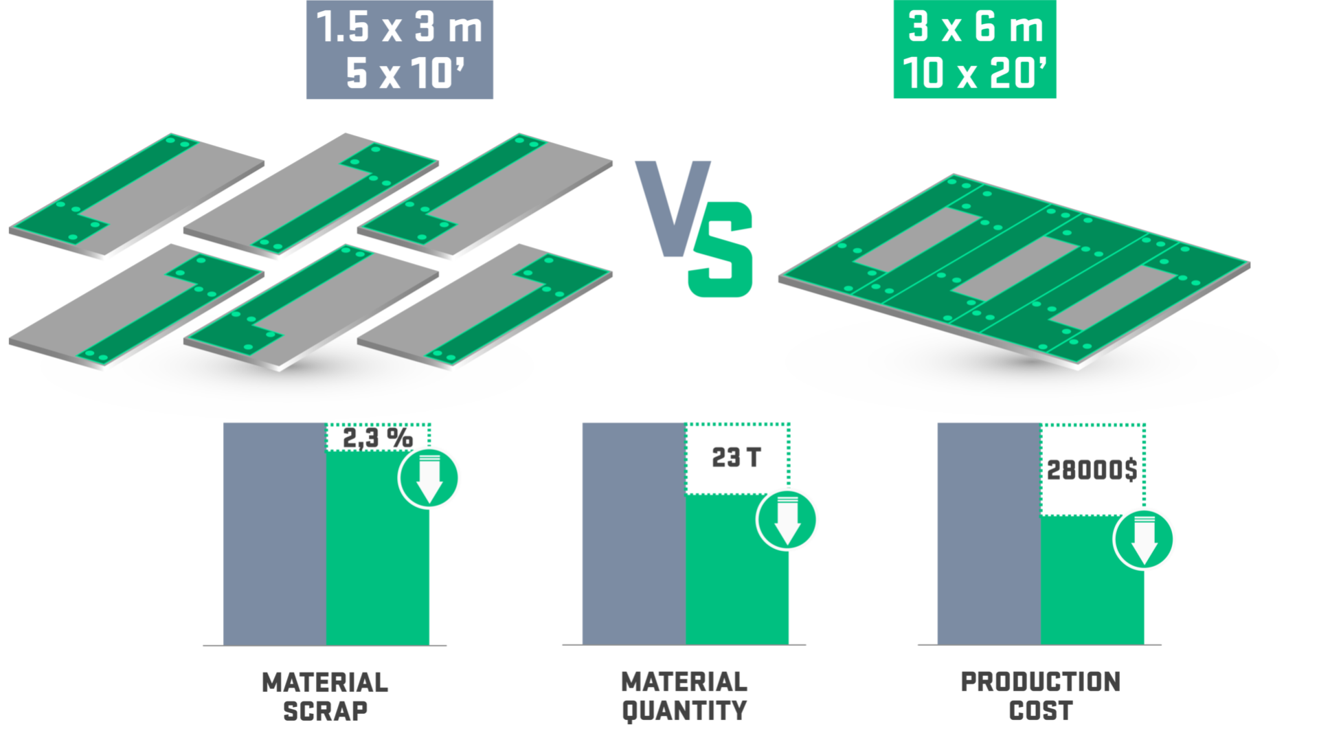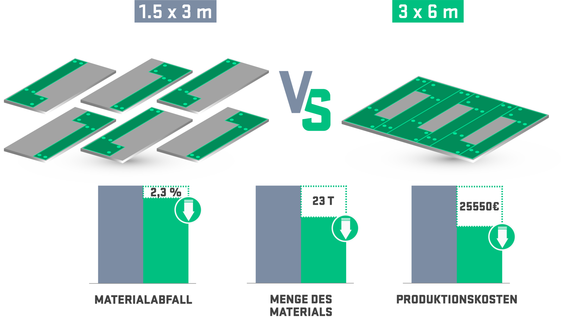 DANK GROSSFORMATIGER VERSCHACHTELUNG KÖNNEN SIE ABFALL REDUZIEREN