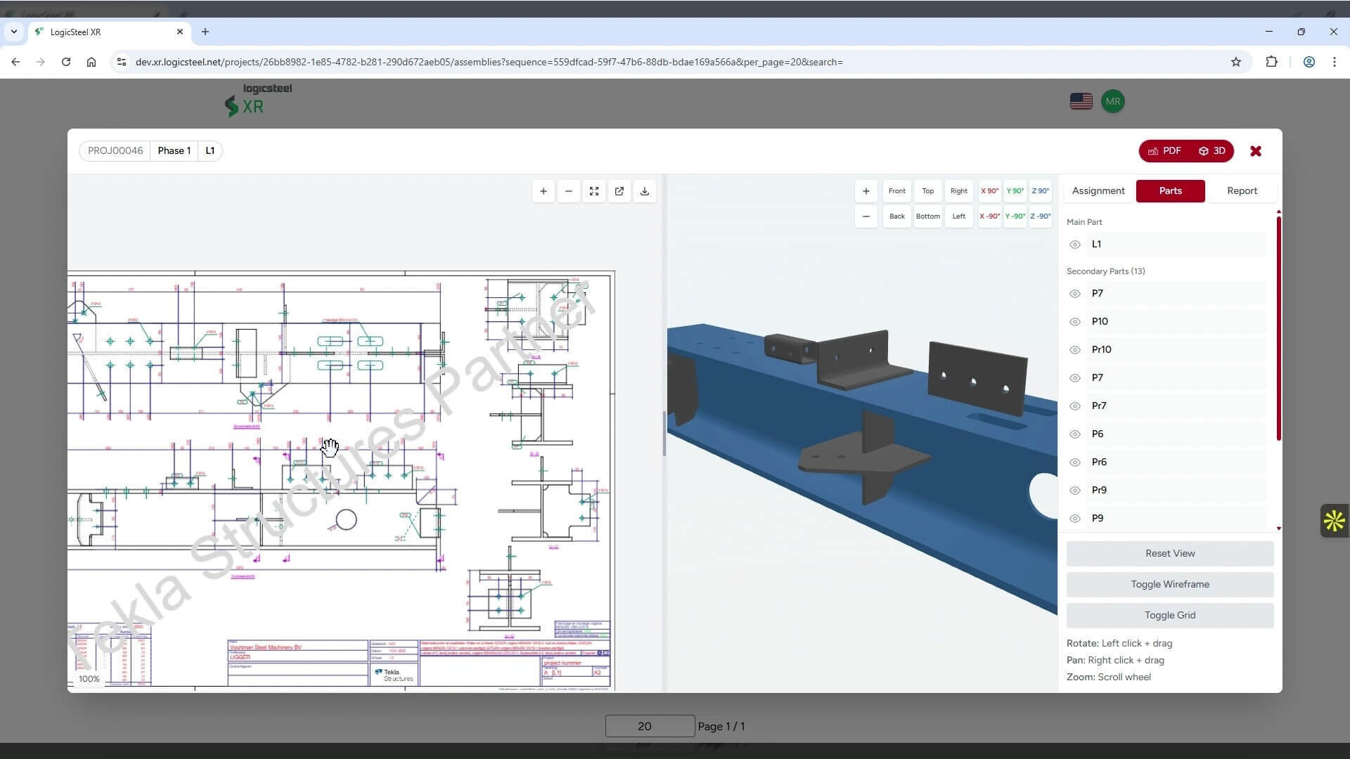 In the XR Backoffice, you manage all production data and select the assemblies you want to check. Here, you can view the 3D model with the corresponding (welding) drawings digitally. Then, quality control begins on the shop floor.
