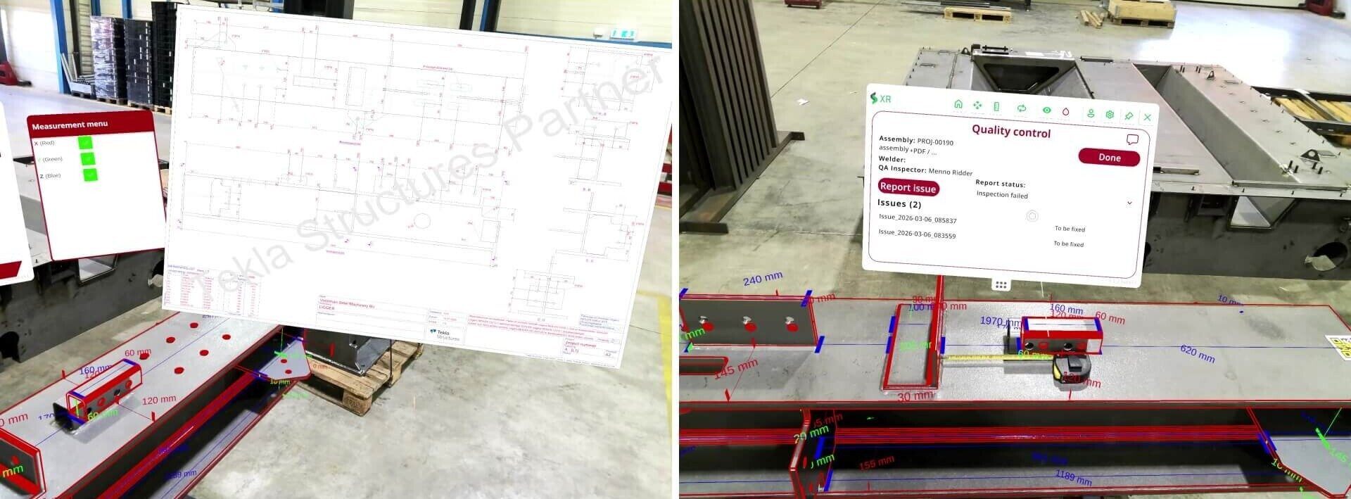 With the all-in-one XR headset, you can project the 3D model directly onto the physical assembly in the workshop. This allows you to see immediately whether everything is correct—without paper drawings or manual measurements.