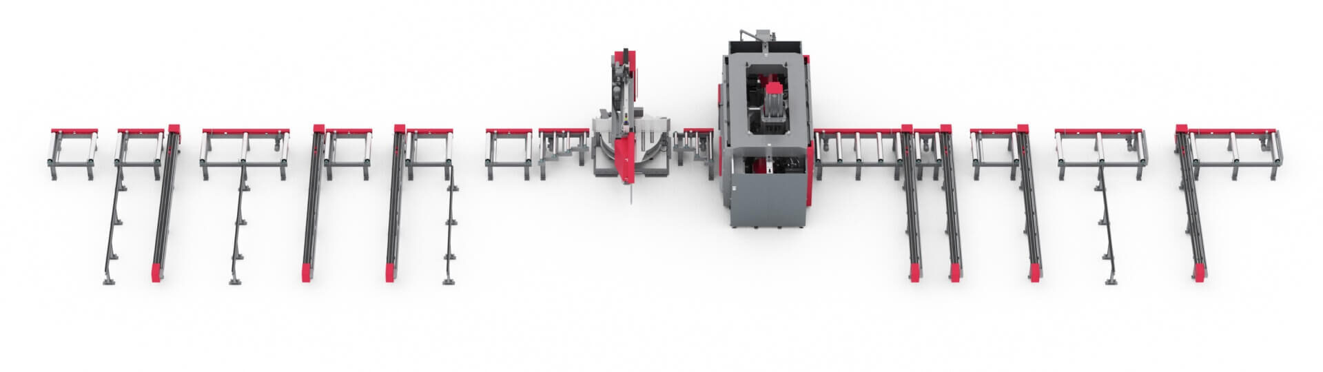 - Características: 3 husillos, 3 x cambiador de herramientas de 8 estaciones, software VACAM y LogicSteel para una secuenciación optimizada y alimentación mediante rodillos o carro de agarre para medición de perfiles