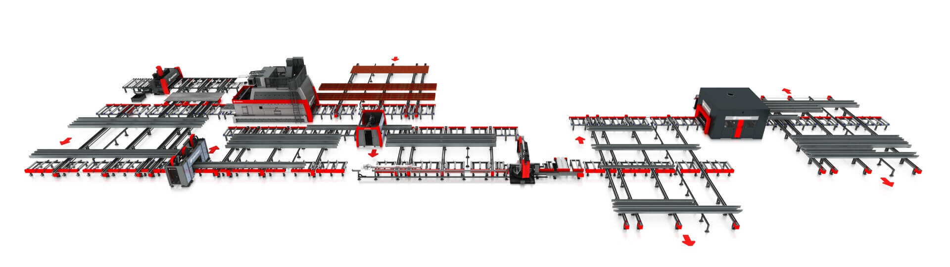 - Características: 3 husillos, 3 x cambiador de herramientas de 6 estaciones, integraciones de software VACAM y LogicSteel.
