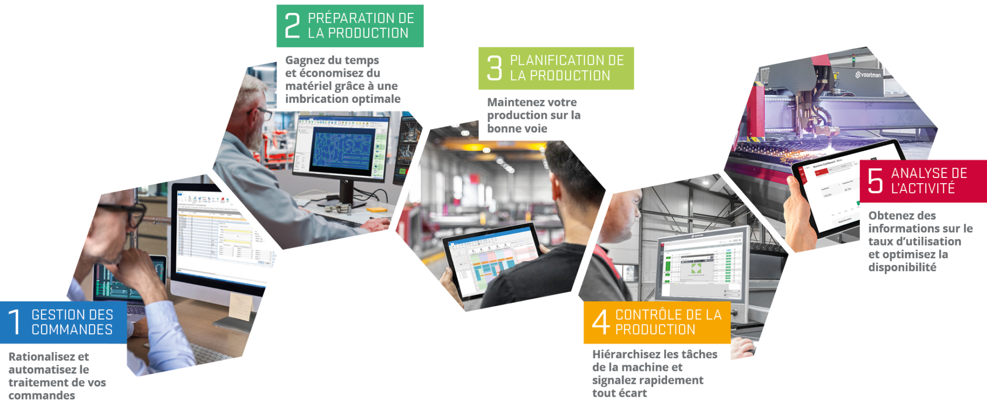 Dans le paysage manufacturier actuel, concurrentiel et en constante évolution, il est essentiel d'avoir une compréhension à 360° de vos processus de production et de vos opérations. La numérisation offre des outils puissants pour accéder aux données interentreprises, vous permettant de prendre des décisions éclairées pour optimiser les opérations. Voortman intègre les machines et les systèmes pour offrir des perspectives en temps réel qui vous permettent de garder une longueur d'avance sur la concurrence et de favoriser le succès à long terme. Découvrez comment nous soutenons chaque étape de la chaîne et restons en tête ensemble ! Continuez à défiler pour en savoir plus ou lisez tout de suite la brochure complète!