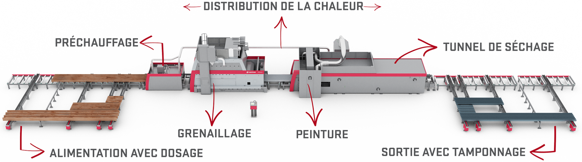 En procédant au grenaillage en début de ligne, les longueurs brutes ayant les mêmes dimensions peuvent être regroupées par votre opérateur et chargées sur la ligne, ce qui permet d'obtenir une efficacité de chargement de 70 à 80 %.