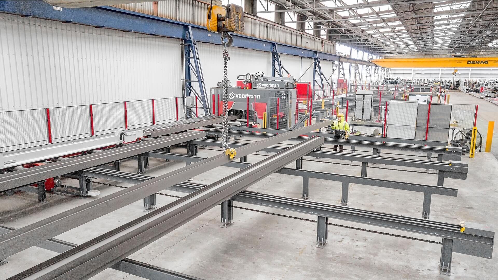 La configuration Back-to-Back relie une machine de perçage et une scie Voortman en une seule ligne de production.
