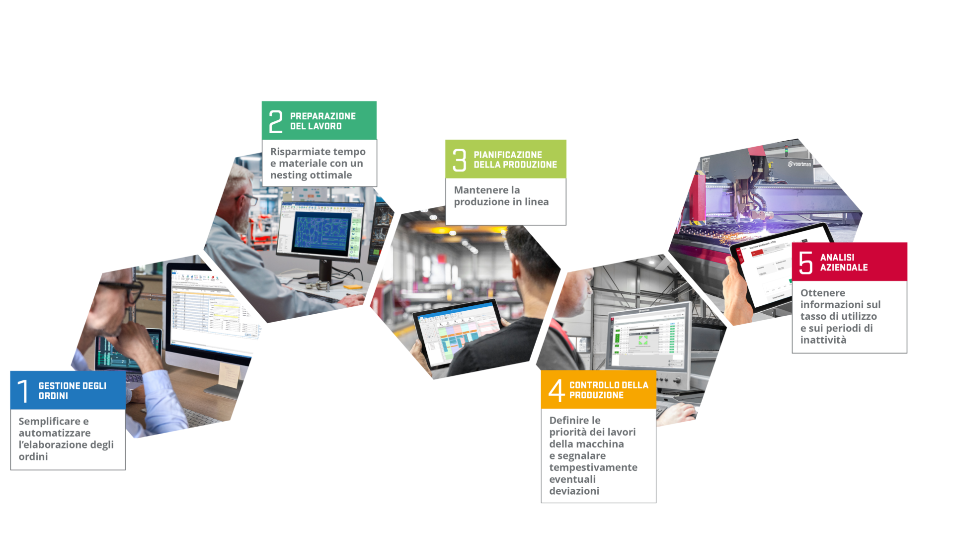 Nella panoramica che segue abbiamo riassunto come potete beneficiare delle nostre soluzioni in ogni fase della catena del valore, dalla gestione degli ordini al prodotto finale. Per tutti i dettagli, scaricate subito la brochure completa.