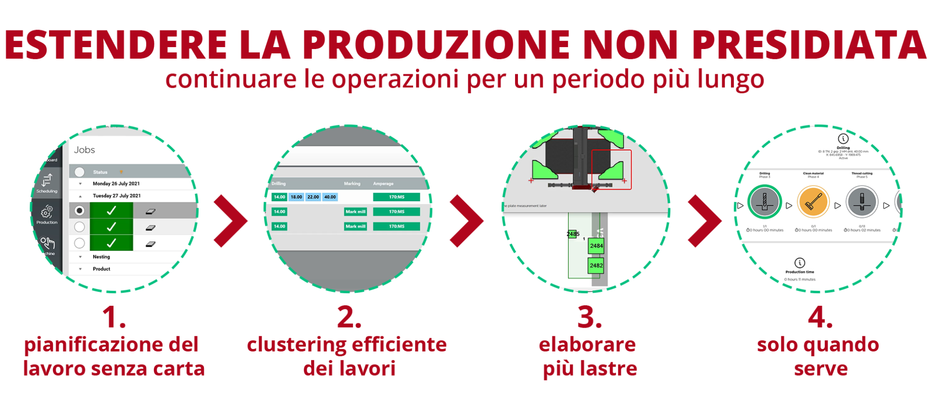 Per fornirvi il maggior numero di informazioni e feedback sulla macchina e per far funzionare la vostra macchina per la lavorazione di lamiere nel modo più efficiente possibile, sono state aggiunte funzionalità innovative al nostro software di controllo VACAM. In questo modo, potrete nominare i vostri operatori di macchina come manager, poiché il loro compito principale si sposterà dal funzionamento della macchina al carico e scarico e alla gestione dell'intera officina. Come? Leggete di seguito!