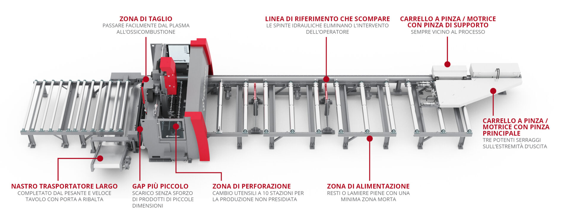 Posizionando i pezzi per ottimizzare l'uso dell'acciaio nella sua interezza e grazie all'HD Multidrop, questa macchina eccelle nella riduzione degli sprechi di materiale e delle spese operative.