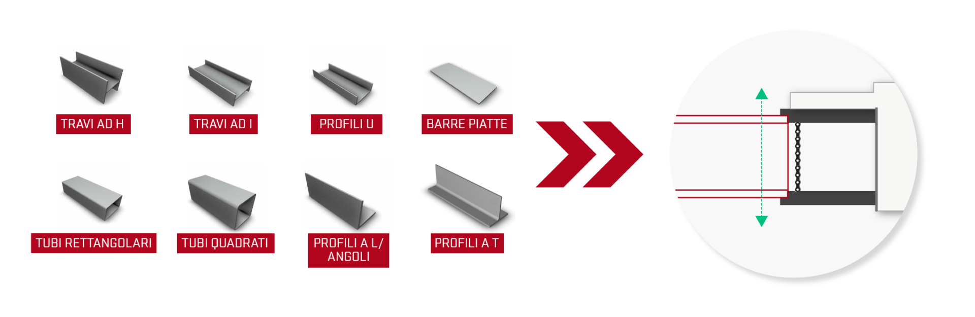 Il sistema V623 migliora l'efficienza della foratura grazie al magazzino centrale per 42 utensili, che consente di cambiare utensile in modo automatico e senza interruzioni. Gli operatori possono facilmente aggiungere e scambiare gli utensili senza fermare la macchina, grazie a un sistema di gestione automatica degli utensili e a un alloggiamento accessibile. L'esclusivo carrello a pinza V623, con ganasce a catena, gestisce profili di qualsiasi dimensione e forma in modo rapido e sicuro a velocità fino a 60 m/min, applicando la giusta pressione tramite un cilindro idraulico. Un sensore intelligente identifica rapidamente i materiali, garantendo un'alimentazione efficiente di varie lunghezze. Inoltre, il robusto meccanismo a catena trasporta in sicurezza profili fino a 12 tonnellate, assicurando una produzione regolare e ininterrotta e un funzionamento prolungato senza operatore.