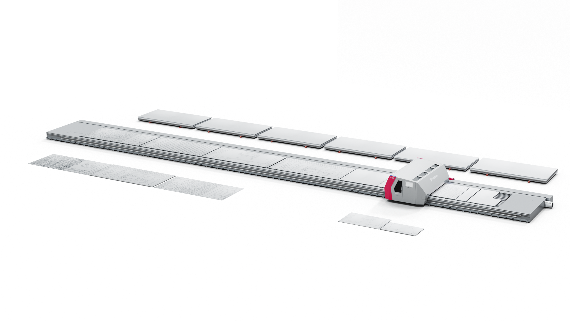 Un piano di taglio modulare che va da 12 a 36 m (da 40 a 120 piedi) supporta la lavorazione continua di lamiere grandi o multiple in un'unica configurazione. Questa area estesa funge anche da buffer naturale: mentre una sezione del piano di lavoro viene scaricata, il gantry continua a tagliare la lamiera successiva. Il risultato è un'attività costante della macchina con meno interruzioni causate da lunghezze di lavoro irregolari o ritardi nella movimentazione manuale.