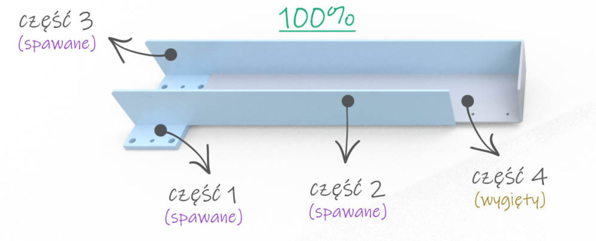 - Spawanie większości wyciętych części razem, z niewielką ilością gięcia.